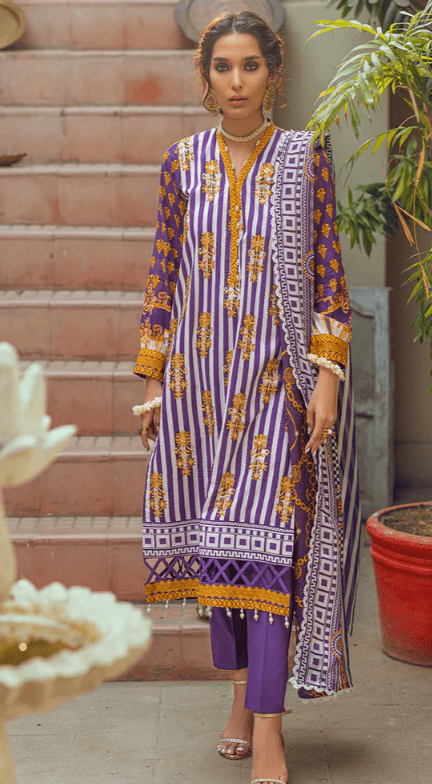 3 pcs lawn embroidered stiched suit latest collection 5
