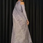 Intricately embroidered floral motifs and a 9.5-meter embroidered border showcase Asim Jofa’s signature detailing. The saree is paired with a digitally printed and embroidered blouse featuring front and back neckline work, borders for sleeves and hem, and soft spun raw silk that ensures comfort with style.