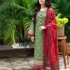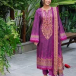 The trouser is a solid dyed cotton in a matching fuchsia shade, providing a clean and polished finish to the overall look. The trouser is also cambric, ensuring durability and comfort. With the Asim Jofa Formal Wear Stitched Lawn Printed Suit, you’ll have a complete outfit that’s perfect for any formal occasion.