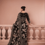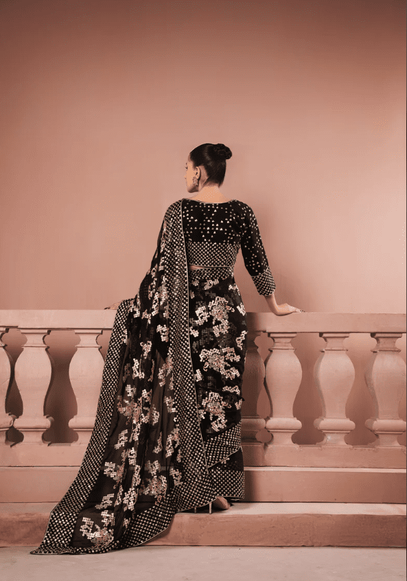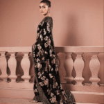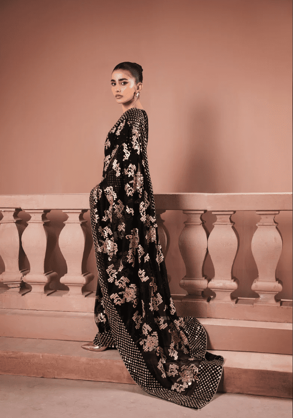 Maria b MBROIDERED Stiched Organza Grey and Black Saree (BD-2504)