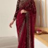 Maria B Stitched saree Couture Red MC 051 LATEST Collection 2025