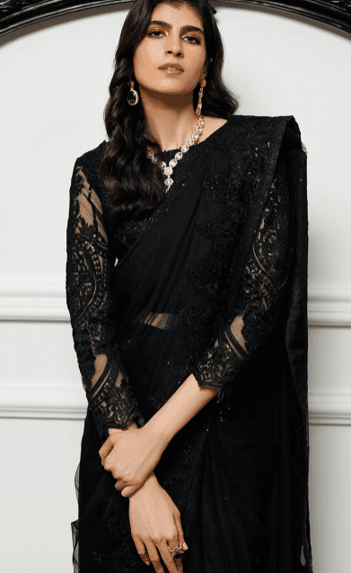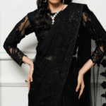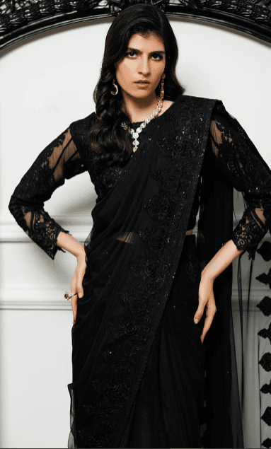 Elevate your elegance with our exquisite Black Net Embroidered Saree. Crafted with utmost precision, this lightweight fabric gracefully showcases intricate designs, adding an ethereal touch to your attire. The net fabric not only offers a luxurious drape and comfortable wear but also lends an enchanting appeal to the saree. Perfect for special occasions or formal events, this saree is a must-have in your wardrobe if you seek a blend of sophistication and timeless beauty.