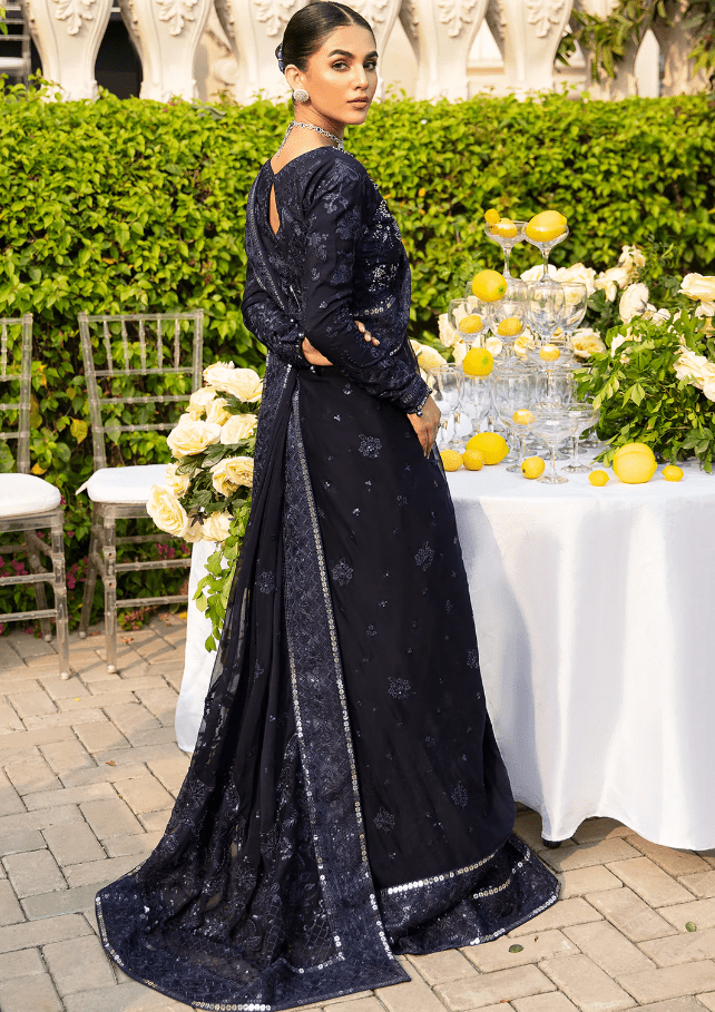 Maria b MBROIDERED Stiched Organza Grey and Black Saree (BD-2504)
