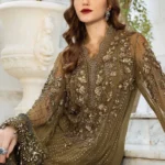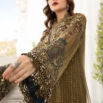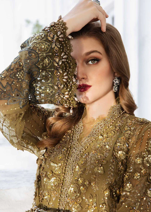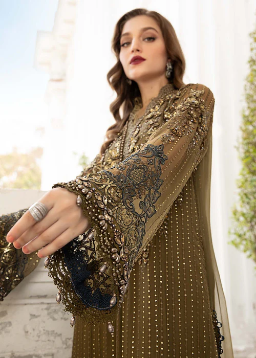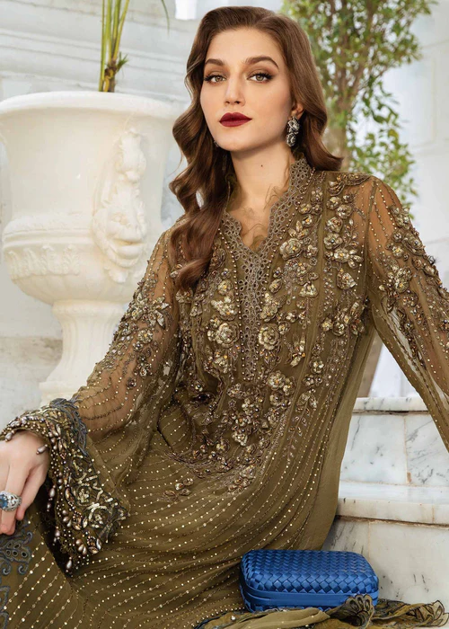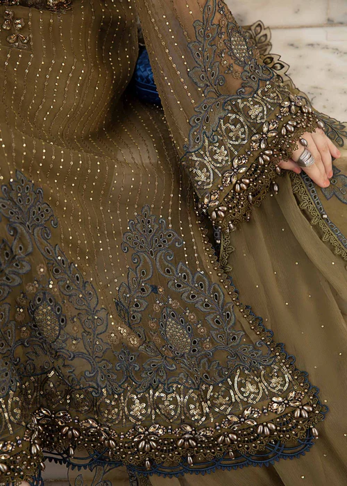 Maria B Olive Green Chiffon Dress – A Perfect Blend of Luxury & Elegance