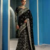 Experience timeless elegance with this black saree party wear, beautifully handcrafted to perfection by Salai Karai. The saree features a fully hand-embellished front body on premium net fabric (0.66Mtr) and an embroidered back body on net (0.66Mtr) for a rich, luxurious appeal. Its hand-embellished sleeves (6 pieces) and 8-meter embroidered saree fabric showcase exceptional artistry, enhanced with 8 yards of hand-embellished borders for a regal finish. The set also includes a 2.5-yard petticoat for a graceful drape.