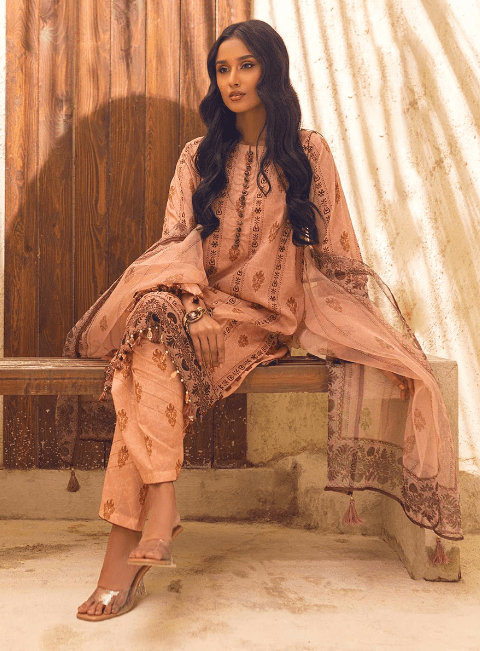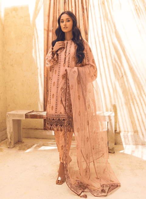 Formal Wear Lawn Printed Stitched Suit With Organza Dupatta 3
