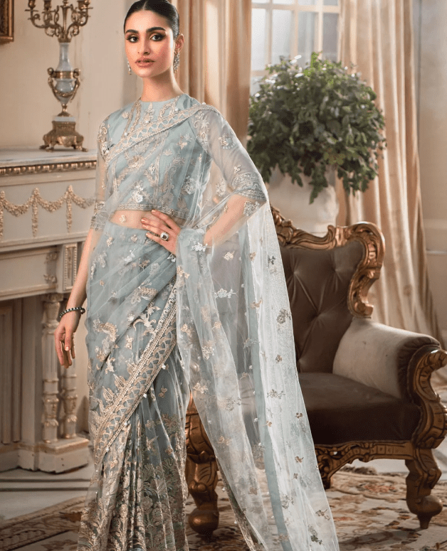 Maria B Stitched saree Couture Red MC 051 LATEST Collection 2025