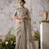 Maria b MBROIDERED Stiched Organza Grey and Black Saree (BD-2504)