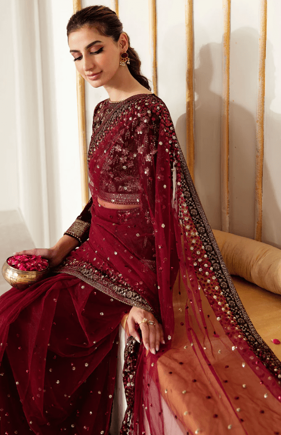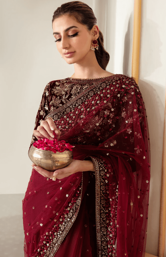 MARIA B STICHED SAREE MBROIDERED ā Rose Pink and Lilac (BD-2404)