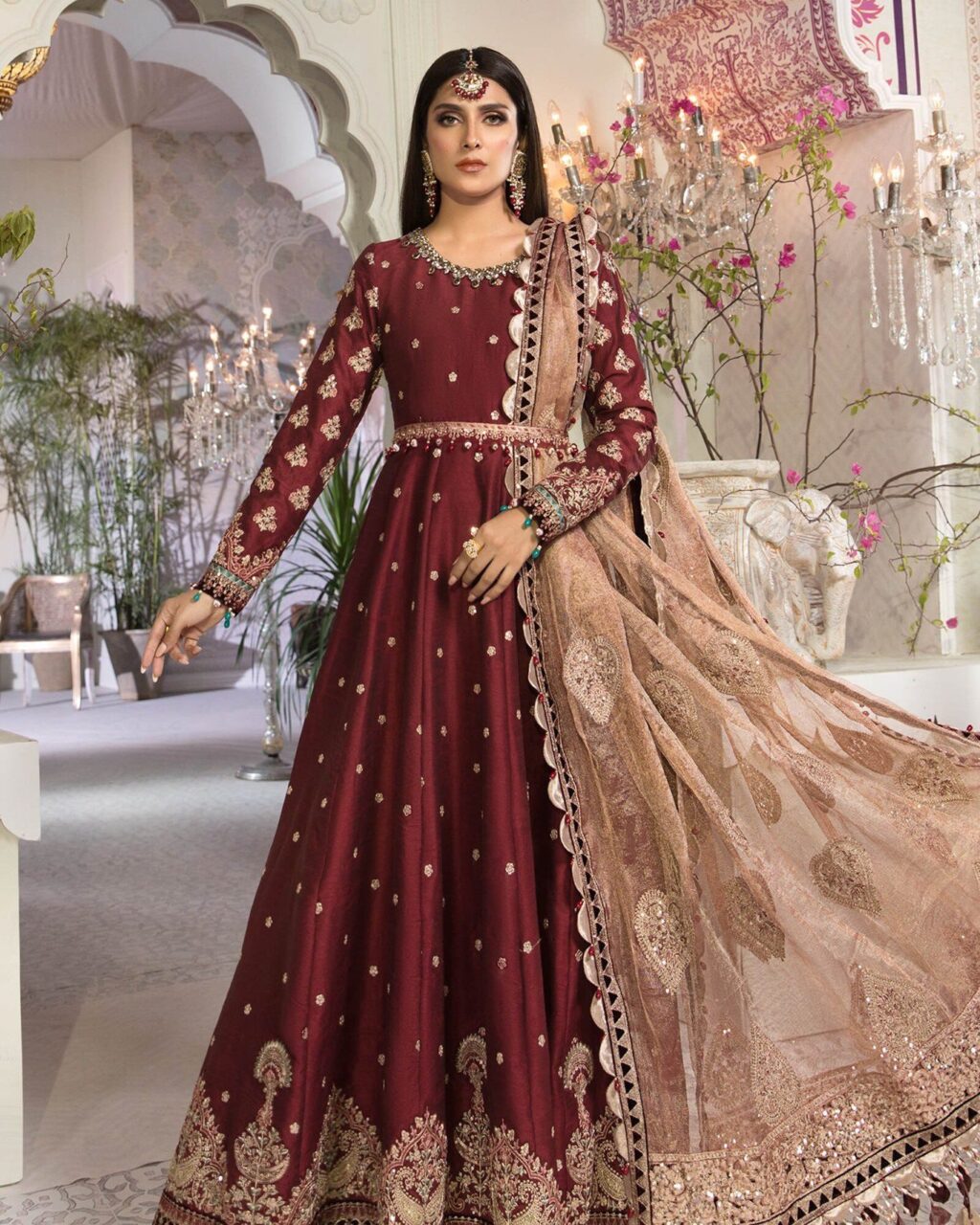 MARIA B LATEST COLLECTION FABRIC RAW SILK KATTAN FRONT EMBROIDERED DAMAN EMBROIDERED SLEVES EMBROIDERED DUPATA EMBROIDERED WITH SAME AS PICTURE WORK PLAIN TROUSER ALL SIZE IN HAND FOR MORE DETAIL MSG US THANK U