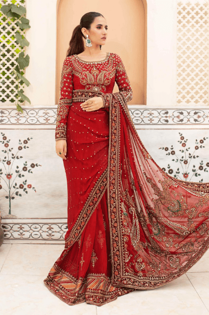 Maria B Couture MC910 Red Stitched Saree Latest Collection 2023
