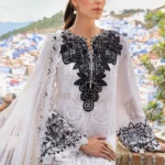 Elevate your festive look with the Maria B Lawn D2505A suit in elegant off white. Crafted from premium paper cotton, it features delicate 3D flowers, pearls, and intricate dori work embroidery. Paired with a paste-printed net dupatta and cambric trousers, this stitched outfit ensures comfort and luxury. Available in all sizes from XS to 2XL.
