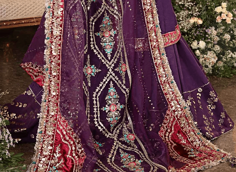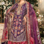 MARIA B STICHED SAREE MBROIDERED – Rose Pink and Lilac (BD-2404)