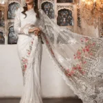 The Maria B Embroidered Stitched White Saree Sari is a beautiful and elegant piece of clothing that is perfect for any occasion. Whether you’re attending a wedding, a formal event, or just looking to make a fashion statement, this saree is sure to turn heads.