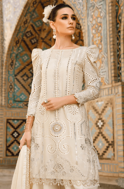 Maria B Stiched Chiffon Saree Coffee & Mahroon Colour Latest Collection 2022