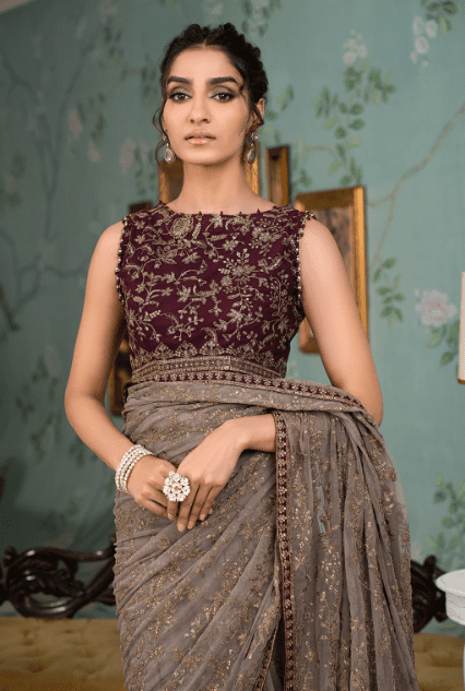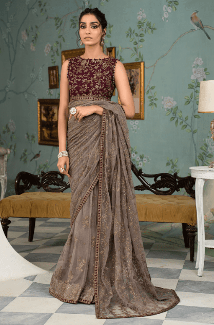 MARIA B SAREE CHIFFON MPC-21-106-Black LATEST EID COLLECTION 2022