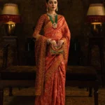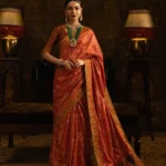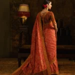 This premium saree features a beautifully embroidered bodice, a contrasting maroon dupatta, and a rich blouse designed with elegant finishing. Crafted in soft silk with organza borders, the saree comes stitched with perfection, making it a ready-to-wear bridal outfit for wedding events and parties in the USA. Available in all sizes for a flawless fit.
