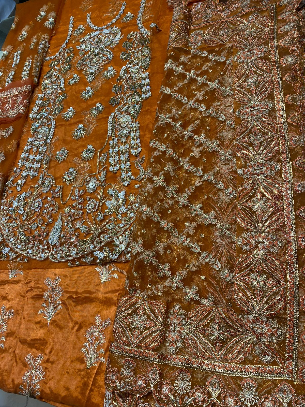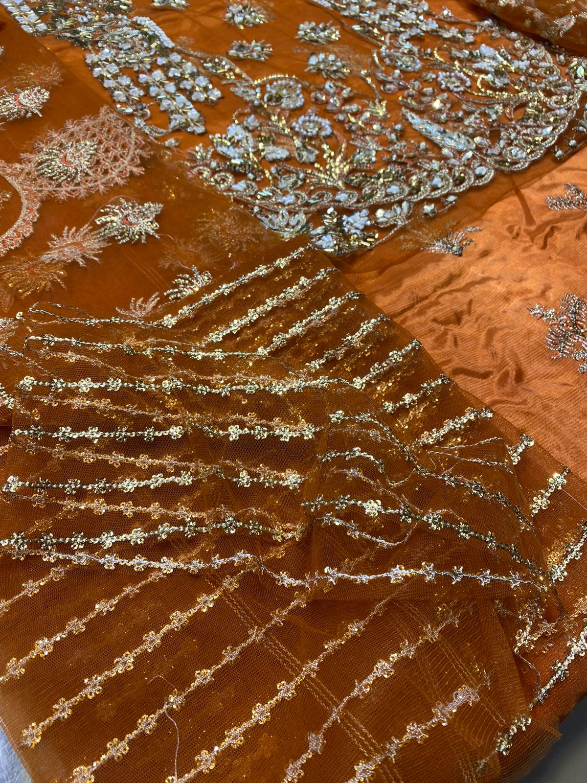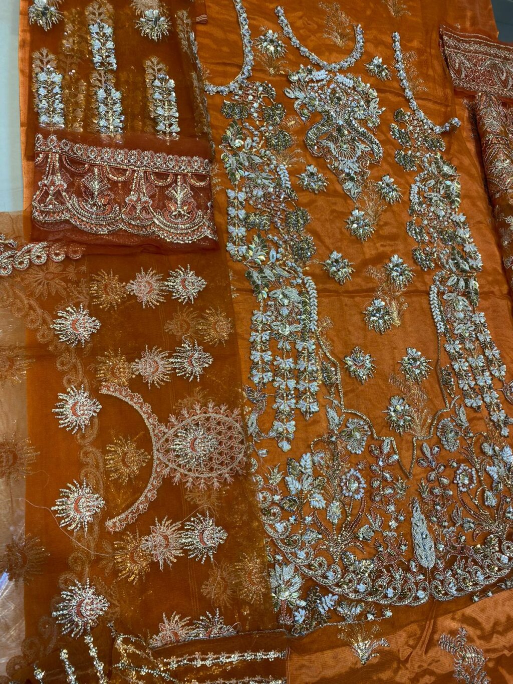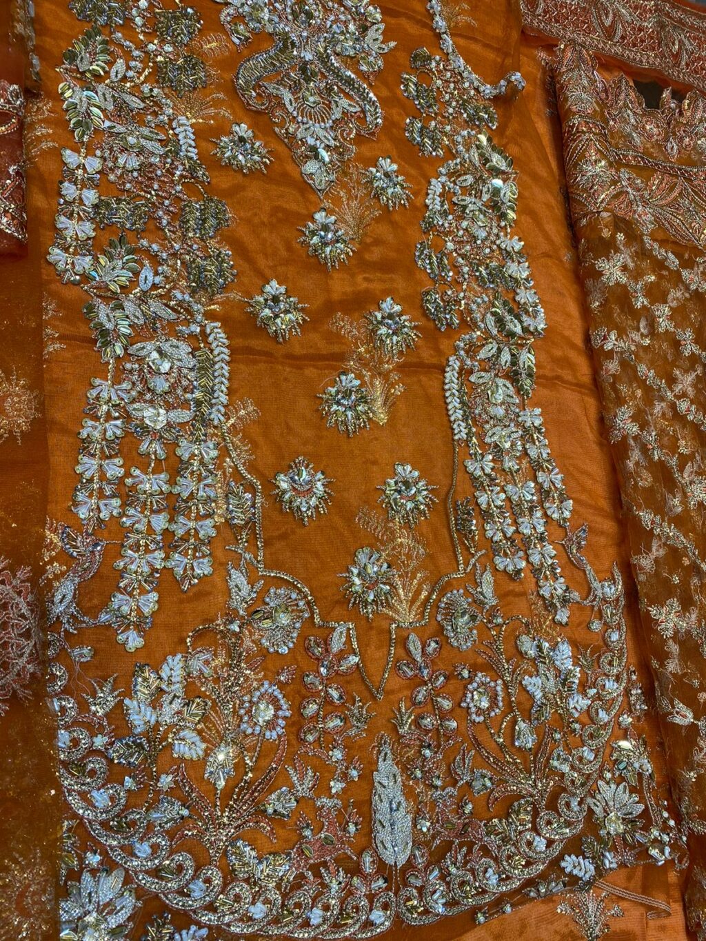 Our party wears handwork stitched embroidered shalwar kameez made from top-quality materials and designed with the latest fashion trends in mind. We use only the highest-quality fabrics, such as silk, chiffon, and georgette, to ensure a comfortable and luxurious feel. Our pieces feature intricate handwork, delicate stitching, and intricate beading to give you a timeless look that will never go out of style.