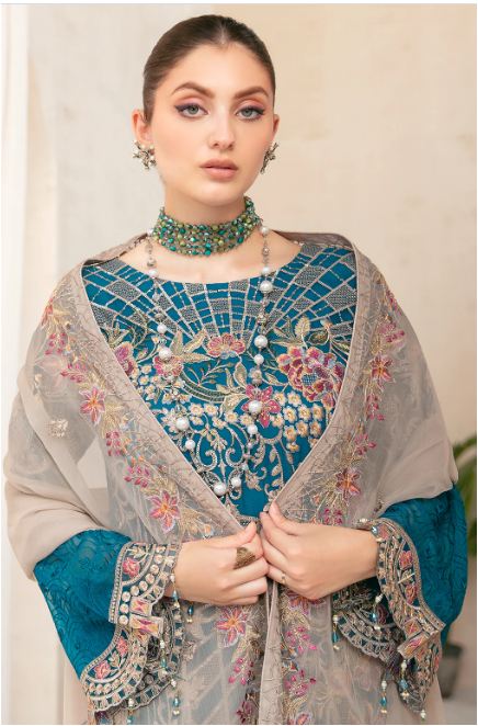 Raw silk trouser – 2.5 Meter Embroidered organza trouser lace