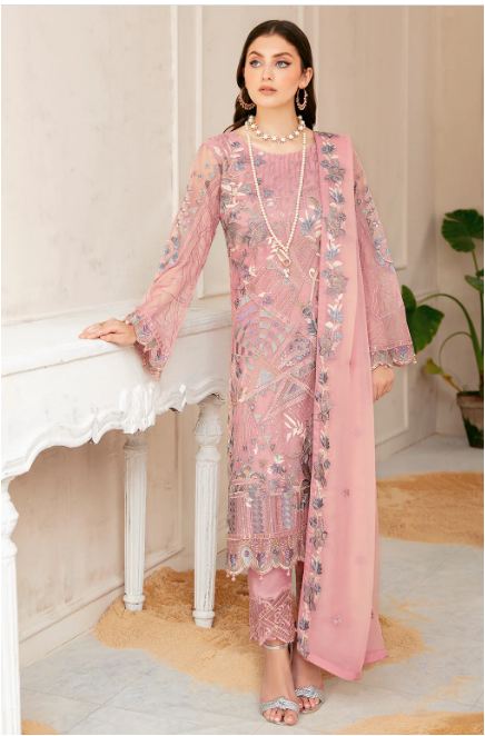 Embroidered Chiffon Back Embroidered Chiffon sleeves