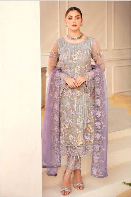 RAMSHA F-2210 STITCHED CHIFFON COLLECTION 2023 Embroidered Chiffon front with sequins