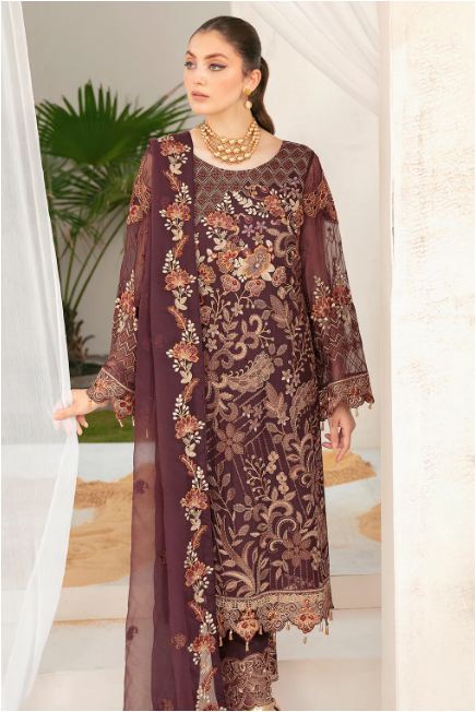 RAMSHA F-2211 STITCHED CHIFFON COLLECTION 2023 Embroidered Chiffon front with sequins