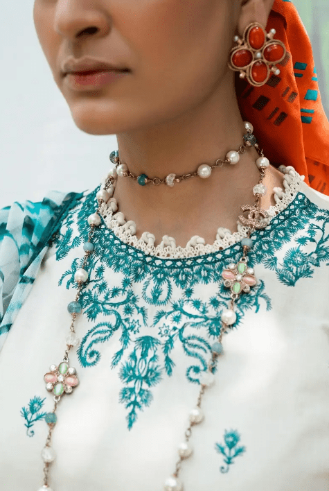 | Embroidered Sleeves On Printed Lawn | 0.65 Meter |
