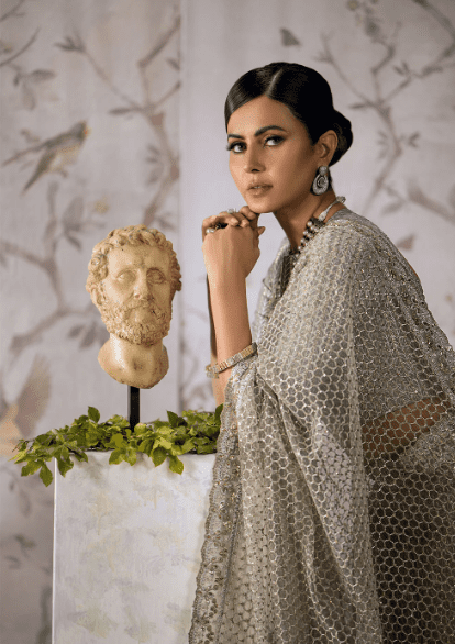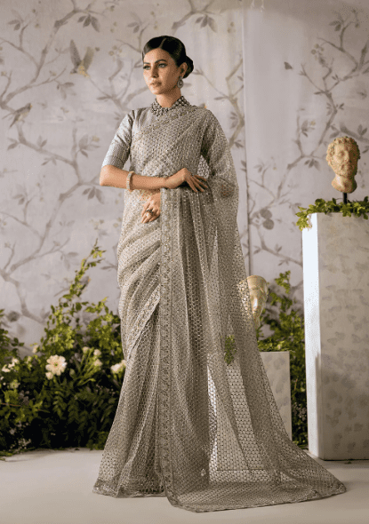 Smokey grey saree
