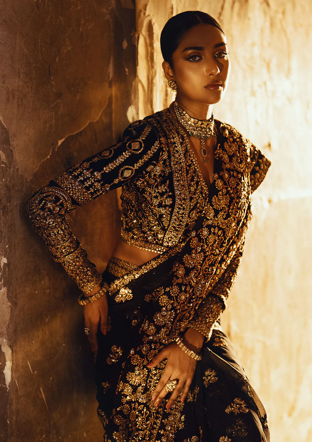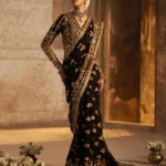 Elevate your traditional wardrobe with this exquisitely designed velvet saree blouse with embroidery. Perfect for weddings, festive occasions, and parties, this timeless piece combines luxurious velvet with intricate detailing. Paired with an embroidered chiffon saree and jamawar petticoat, it ensures an elegant and graceful look.